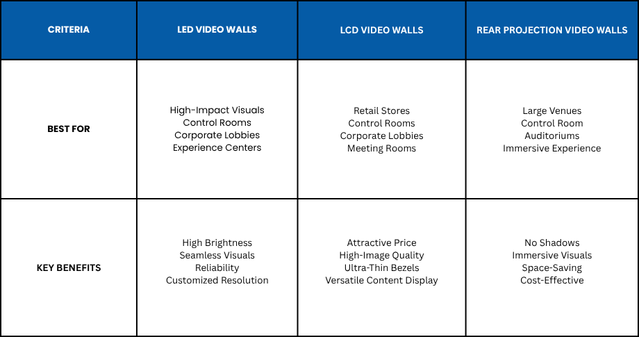 Smart AV Solutions specializes in advanced LED and LCD video wall systems tailored for commercial, corporate, and event environments. With a focus on quality, customization, and seamless integration, we help businesses transform ordinary spaces into dynamic visual experiences. Whether it’s for branding, monitoring, or engagement, we bring clarity and impact to every display solution.