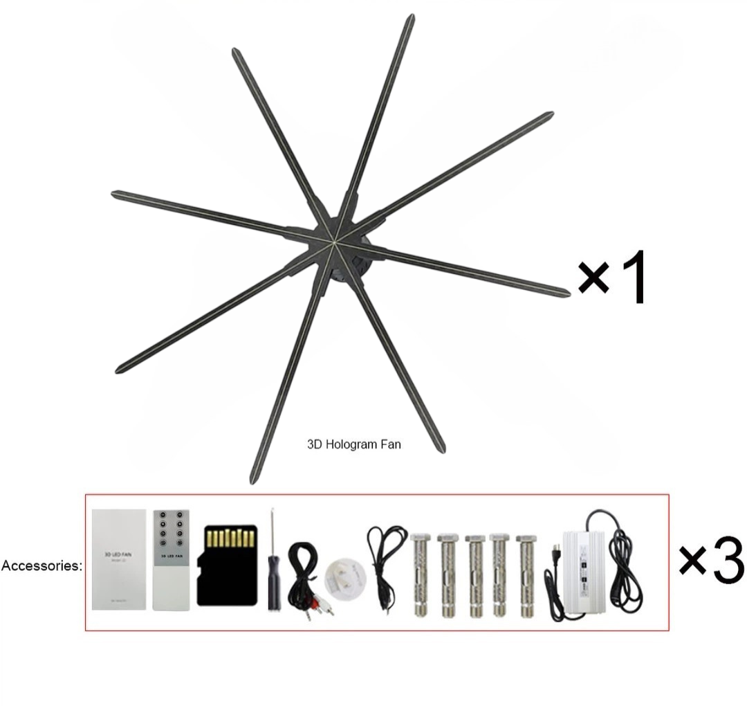 • 1× 3D Hologram Fan HD-F150 (150 cm)