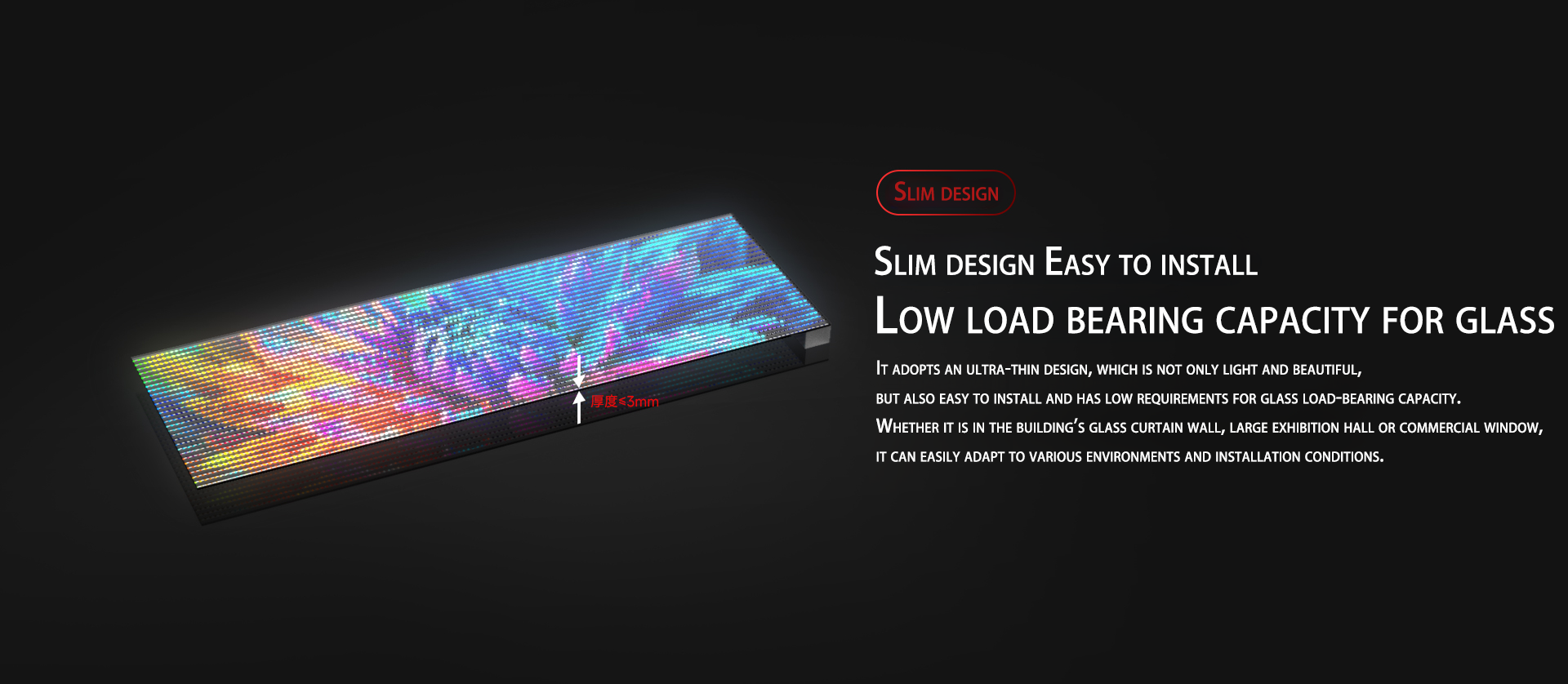 • Lightweight Structure: Approx. 3.5 kg/m² for easy mounting on glass and structures