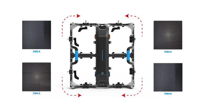 The DM Series redefines visual performance with its modern and futuristic outer frame design. Featuring sleek, smooth lines that converge toward the center, the unit delivers a dynamic and high-tech visual aesthetic. Built for both indoor and outdoor environments, the DM Series supports flexible installations including fixed setups and rentals.