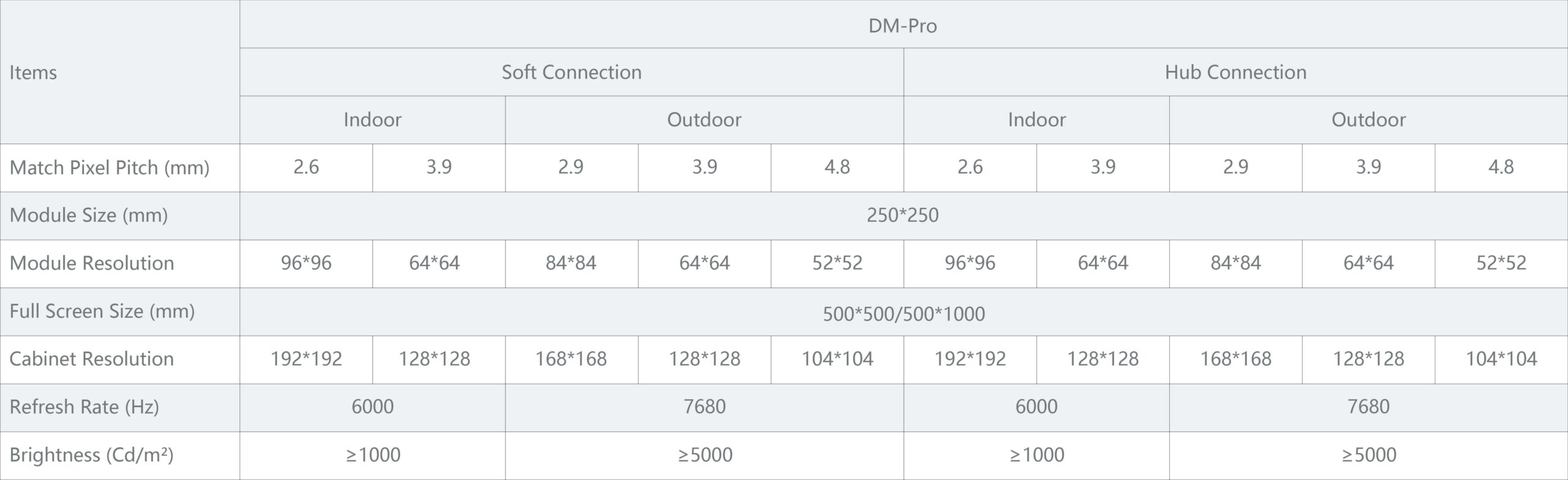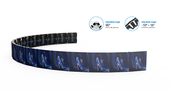 The adjustable box angles (10° outer arc and 15° inner arc) make the DM Series ideal for creative setups and curved LED displays.